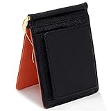 [GRAV] マネークリップ 小銭入れ付き メンズ 財布 二つ折り ICカード隠しポケット付き (ブラック/オレンジ)